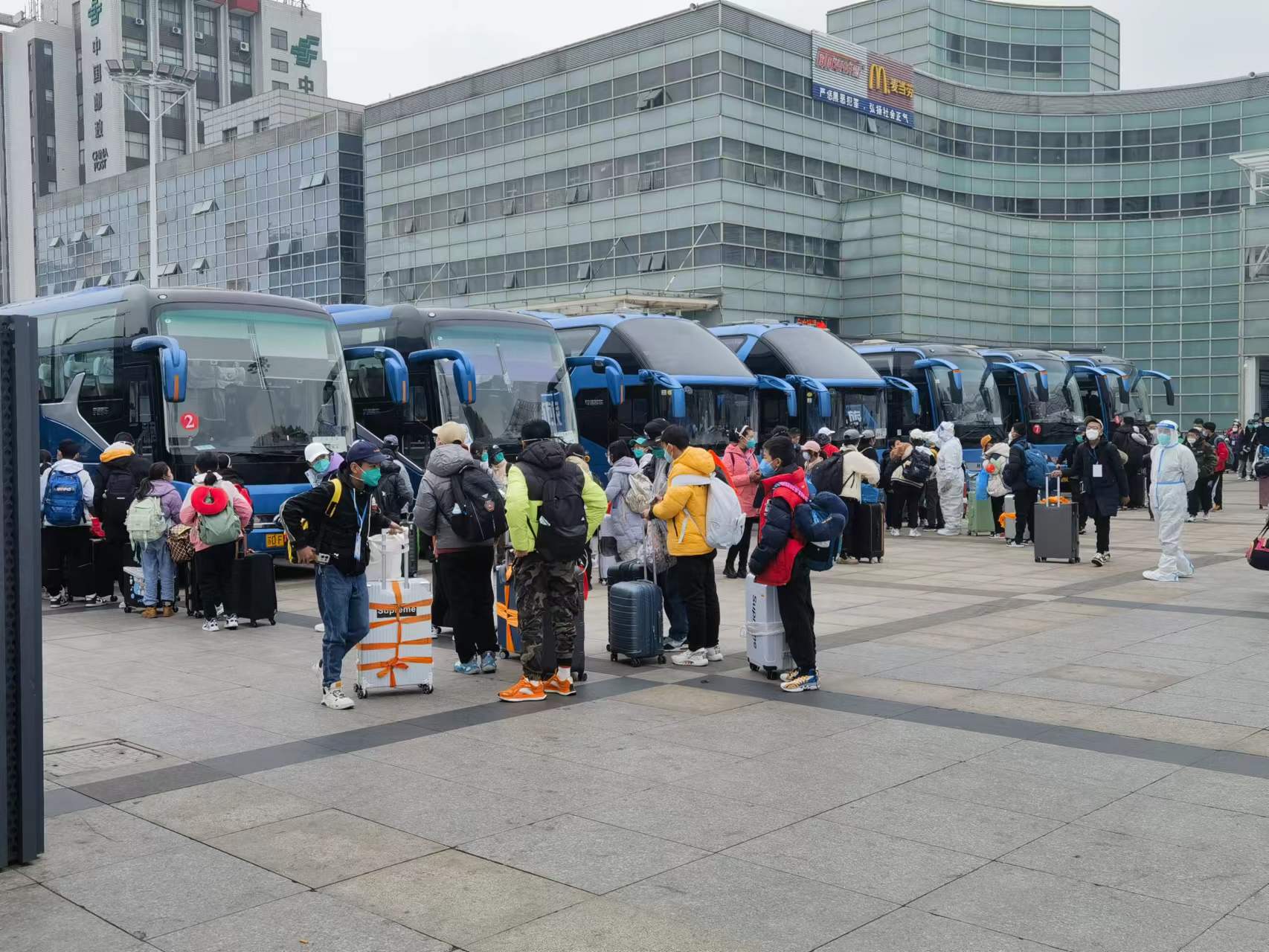 當天,19輛轉運大巴早上8:00準時出發(fā),到達火車站南廣場后,在調度員的指揮下,整齊停放在引導處,原地等待。10:11,專列進站,600多名西藏學生陸續(xù)出站,由駕駛員引領至對應的大巴車,并在駕駛員的幫助下,安放行李、更換口罩、登車入座。僅用30分鐘,所有學生全部安排妥當,轉運大巴逐一開往對應酒店。一路上安全平穩(wěn),到達酒店后,駕駛員指揮學生有序下車,拿好行李,跟酒店做好交接,辦理移交手續(xù)。隨后,車輛、駕駛員立即做消殺,下午2點左右,大巴全部返回,轉運任務圓滿完成。