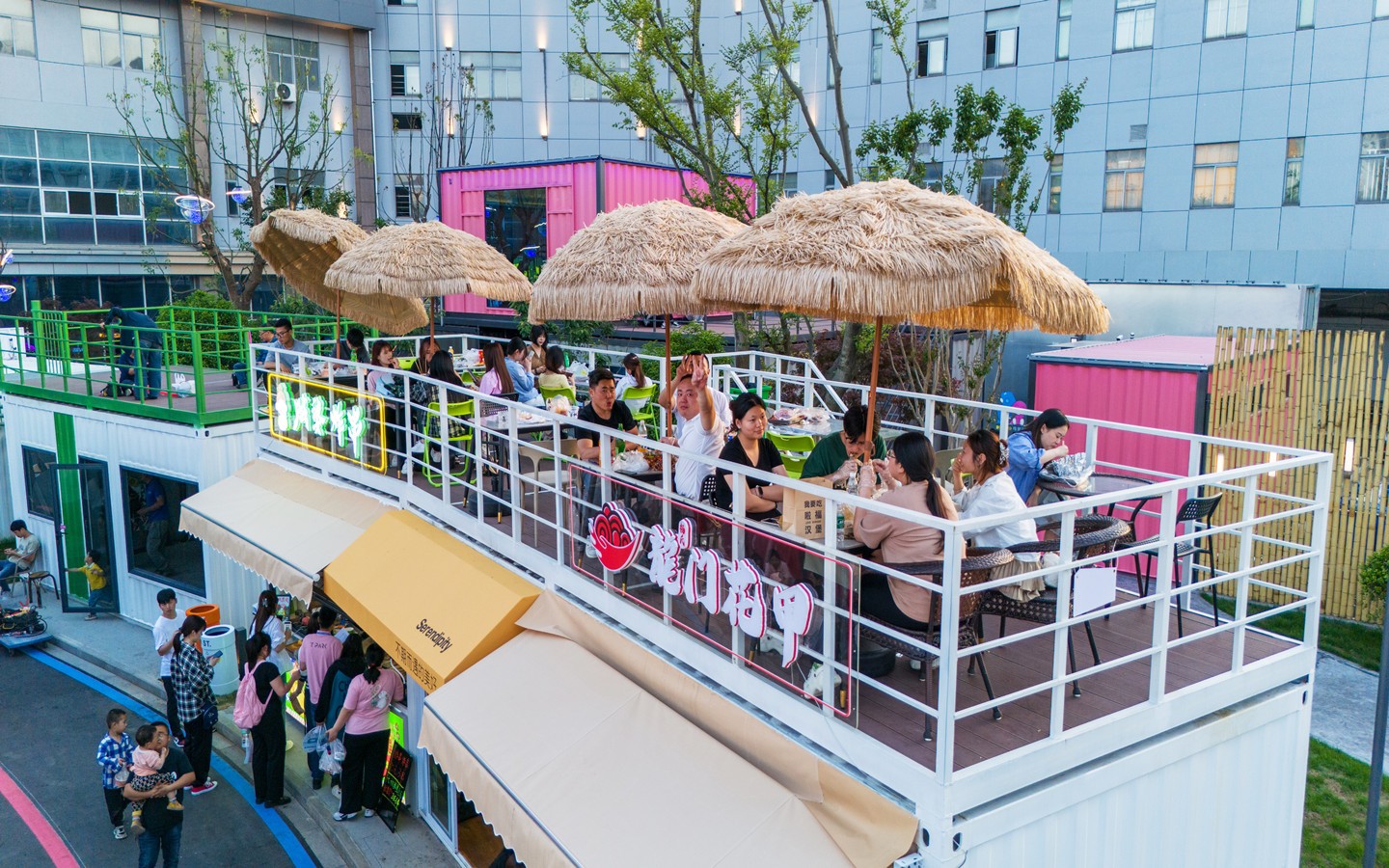 的核心銜接點(diǎn);身處長三角知名產(chǎn)教城融合示范區(qū),緊鄰常州大學(xué)城、科教城。街區(qū)占地約120畝,已投資1.5億元,定位“Z世代”青年網(wǎng)紅潮集地,切中文商旅融合、夜經(jīng)濟(jì)、她經(jīng)濟(jì),通過創(chuàng)意餐飲、文創(chuàng)市集、微醺空間、日咖夜酒、潮流運(yùn)動、藝術(shù)研學(xué)、宴會中心、網(wǎng)紅書屋、親子文娛、城市營地等多功能社交業(yè)態(tài),立足打造長三角城市微度假特色目的地與文旅新地標(biāo)。作為開放式城市公園風(fēng)格,街區(qū)分“東中西”3大區(qū)域、7塊生活版塊,聚集了創(chuàng)意餐飲、文創(chuàng)市集、潮流運(yùn)動、藝術(shù)研學(xué)、親子文娛、城市營地等多功能社交業(yè)態(tài)。其中,“運(yùn)動+藝術(shù)”雙活動廣場超1萬平方米,汽車、森系街區(qū)、無界秀場、國際友人俱樂部、青年情緒引力場等創(chuàng)意主題空間將陸續(xù)上線。